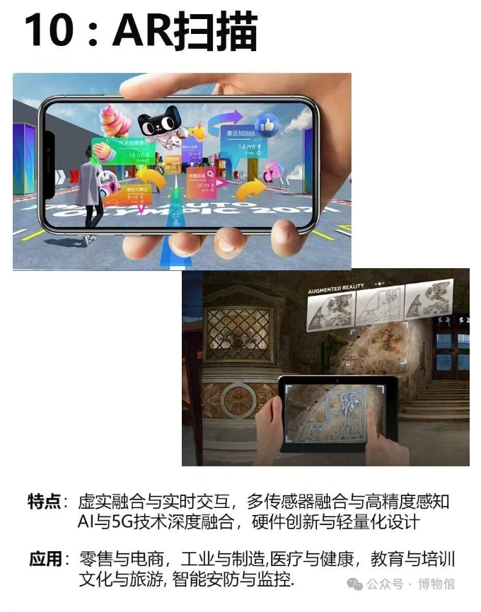 1、AR扫描 2、MR实机演示 3、XR 大型空间沉浸展 4、按钮互动/墙面交互 5、触控投影交互